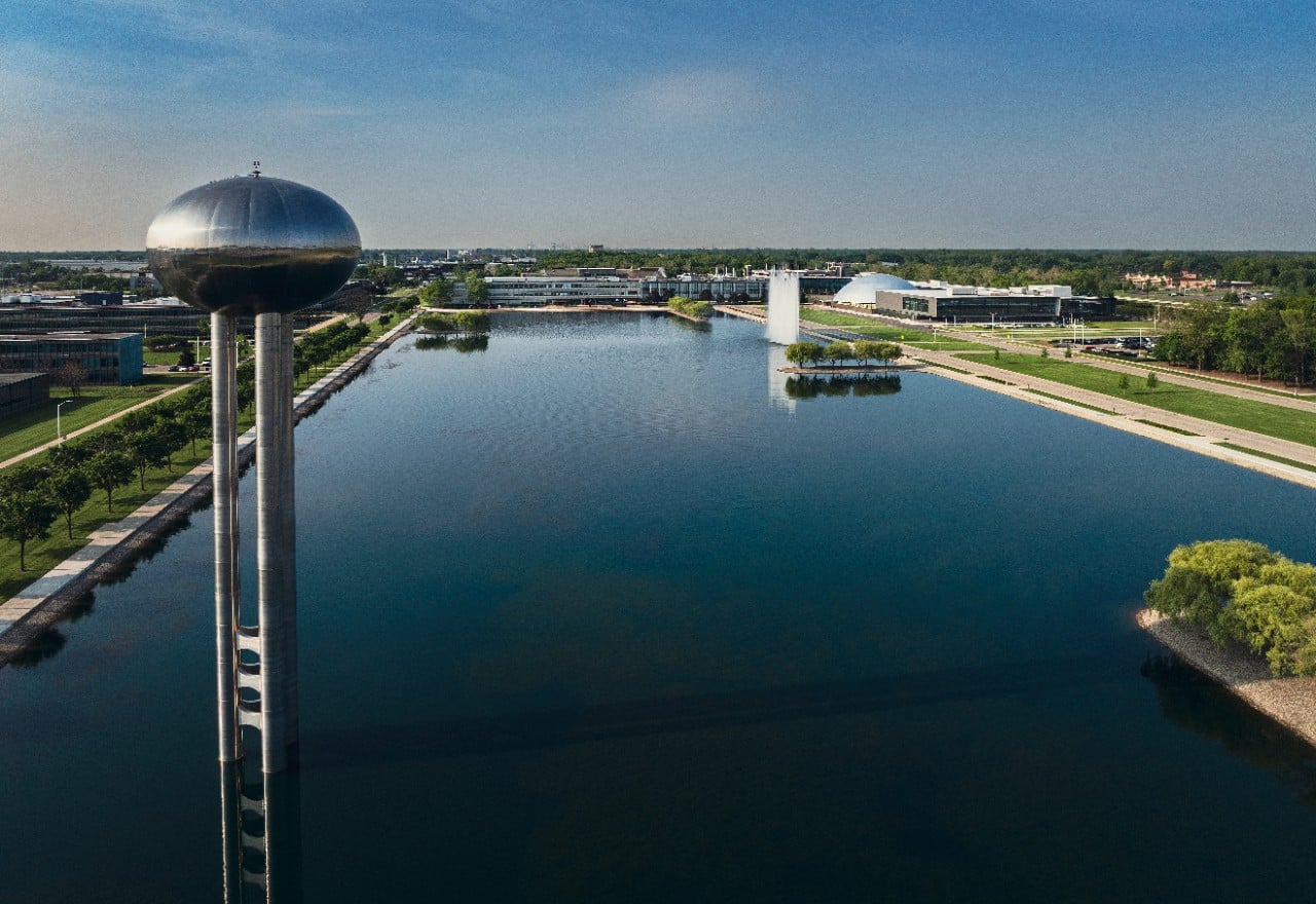 Eero Saarinen’s (1910 – 1961) first major architectural project was the GM Technical Center. Construction began in 1949, and the $125 million campus officially opened on May 16th 1956 with an address by President Eisenhower. Saarinen wanted the center to be a symbol of future industrial design with buildings that were both beautiful and functional. With its steel domed showroom, the Technical Center campus was dubbed “The Industrial Versailles” by Life Magazine and “An American Versailles” by LOOK.